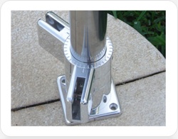 Bottom Vari Angle Coupling pivoting on central main post to various angles as required with subsequent fixing to permanent position and standard base mounting